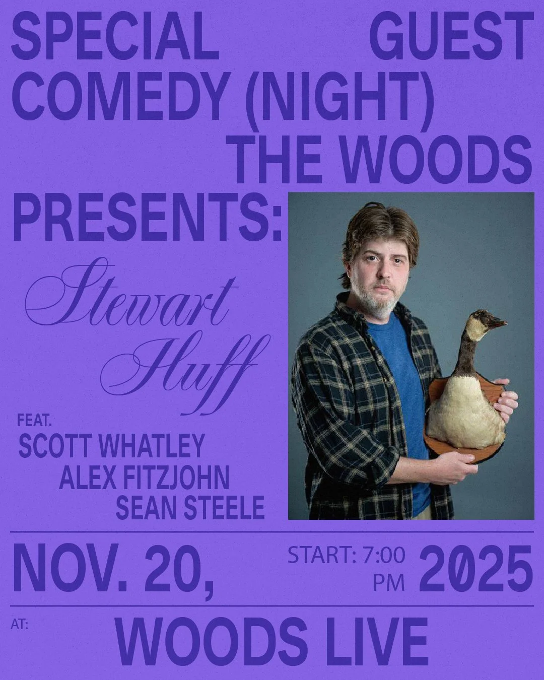 Get ready for an unforgettable night under the stars as The Woods Live presents a stacked comedy lineup headlined by the brilliant Stewart Huff, with feature performances from Scott Whatley, Alex Fitzjohn, and Sean Steele — all taking the stage thursday, November 20th at 7PM!