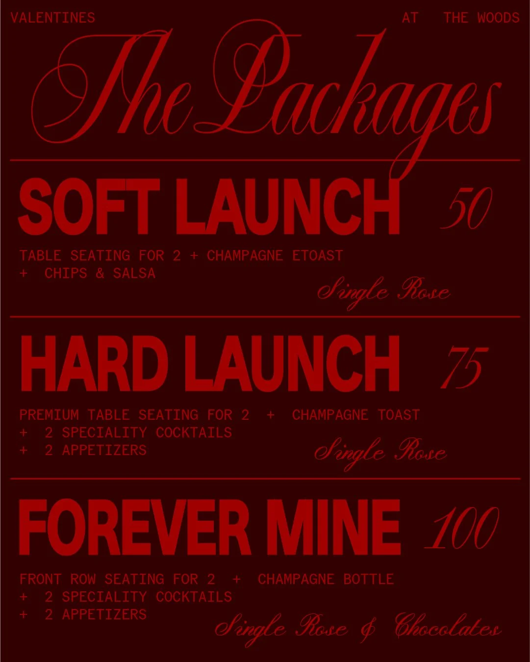 Set the mood with champagne, roses, and chocolates, paired with a curated Valentine’s dinner experience in a beautiful, candlelit atmosphere. It’s romantic without being cheesy, playful without trying too hard, and just the right amount of wild.